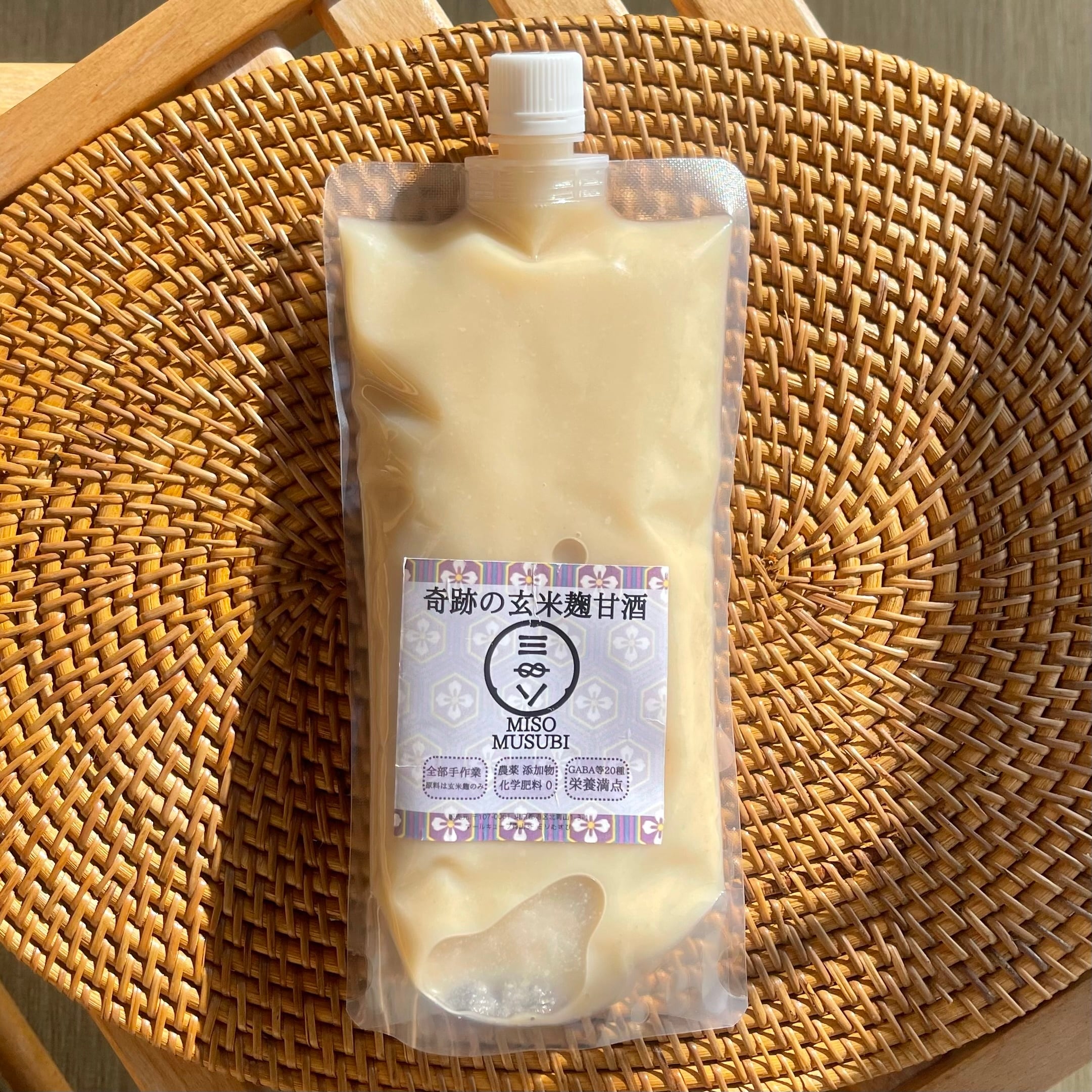 ミソむすびの由佳が農家さんを訪れた際、偶然出会った玄米麹100%の甘酒。